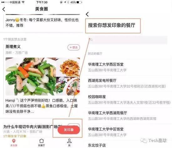 此外,附近的餐厅内还设置了一个悬浮入口,叫做“发印象”。每个用户都可以分享照片和视频,并写上点评。